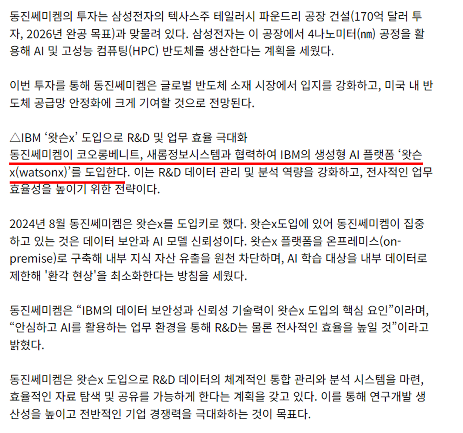 [보도기사] IBM watsonx 기반의 생성형 AI 지식탐색플랫폼(ASK) 구축 관련 기사